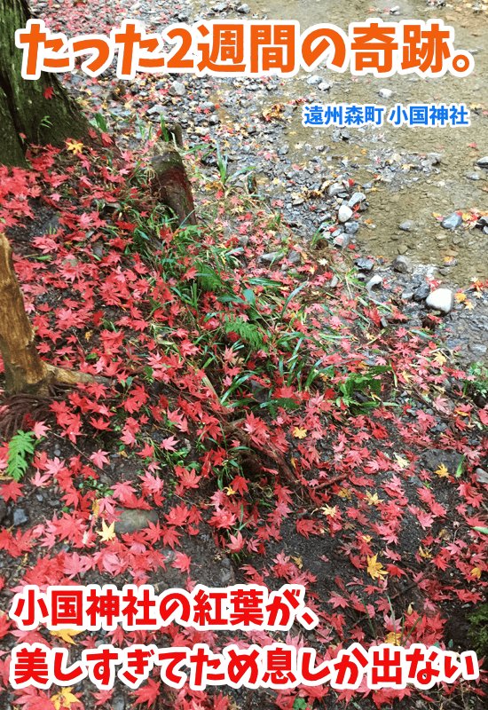 前回、紅葉の名所・小國神社の様子を見てきたけど、小國神社の紅葉の道はまだまだわしら観光客の目を楽しませてくれるのじゃ!