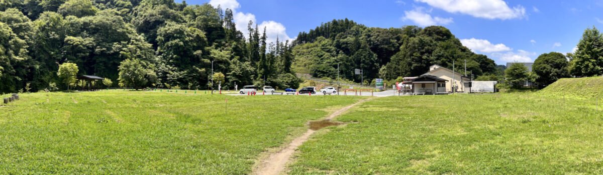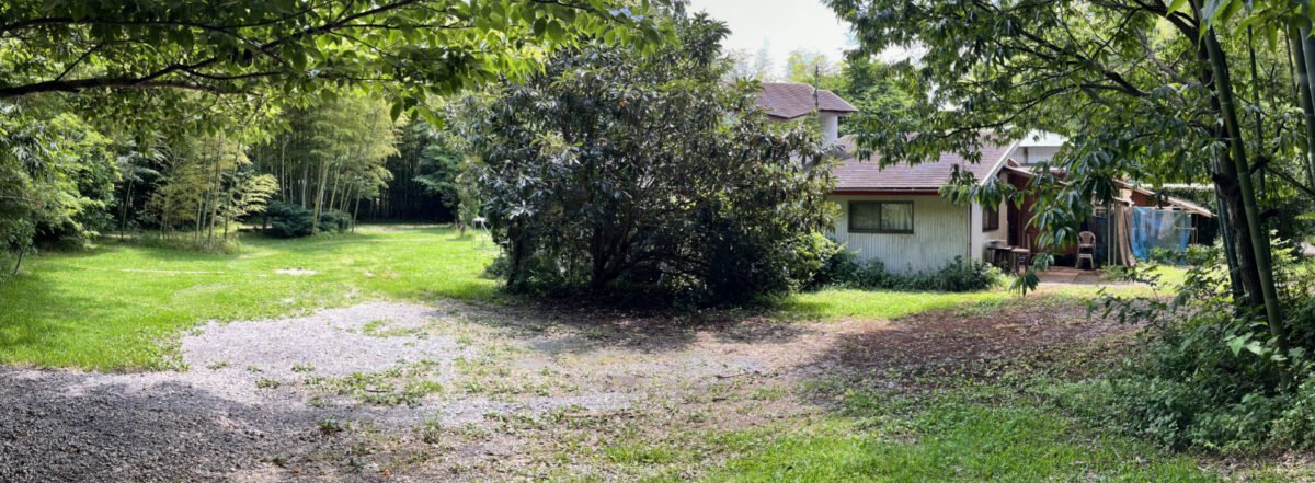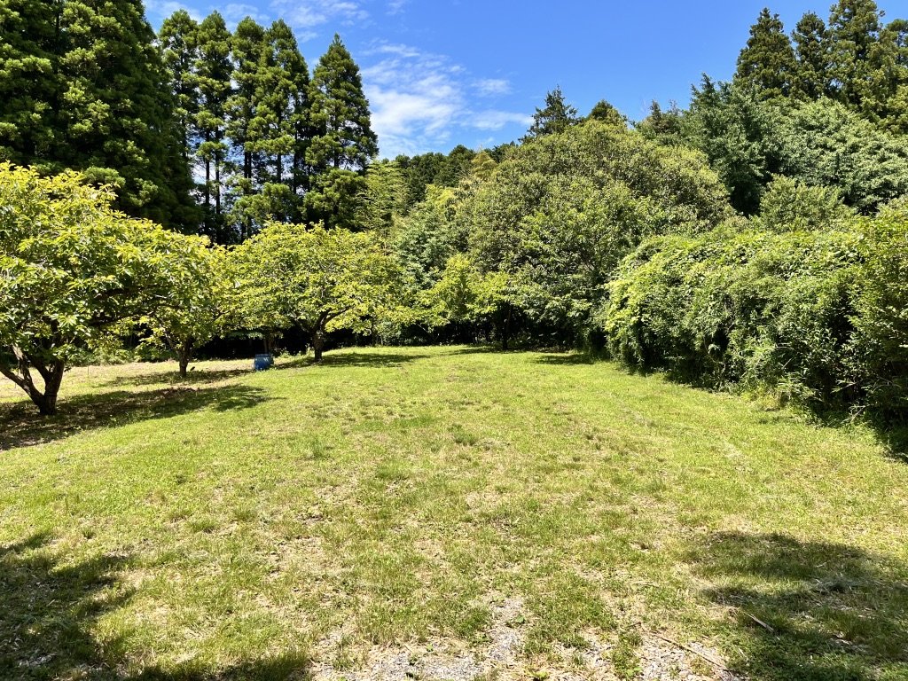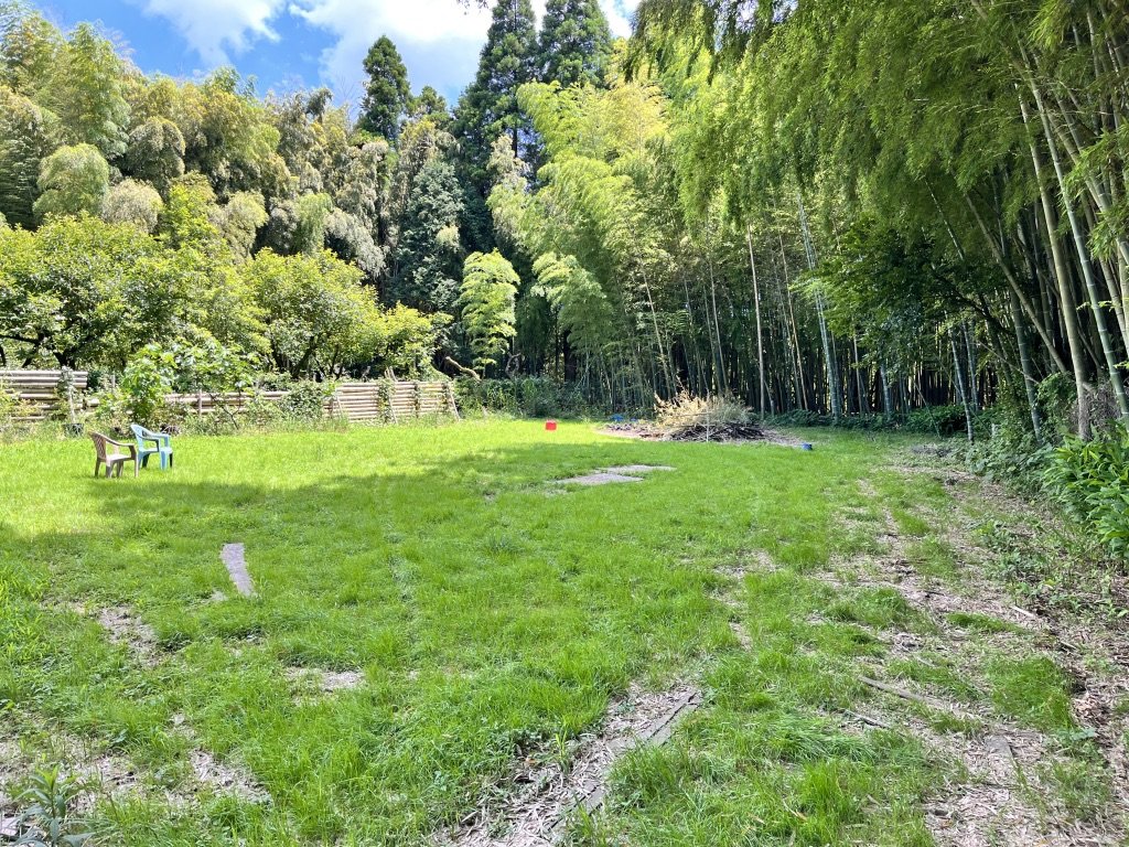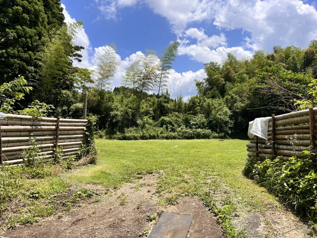 管理棟を抜けて隣の竹林の方へ向かうと芝生の広けた場所に出くわした。