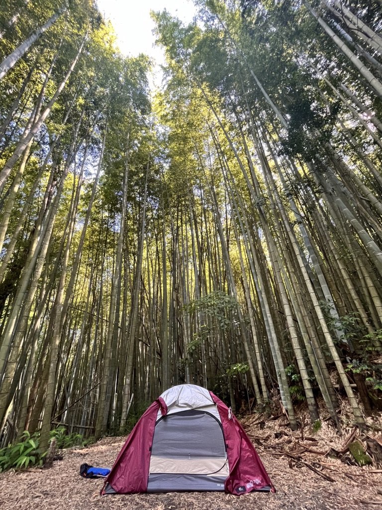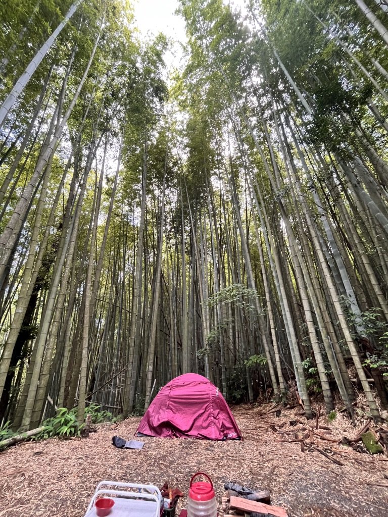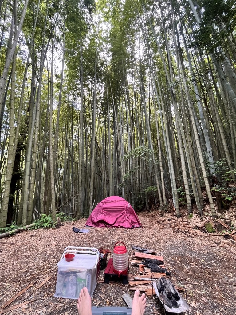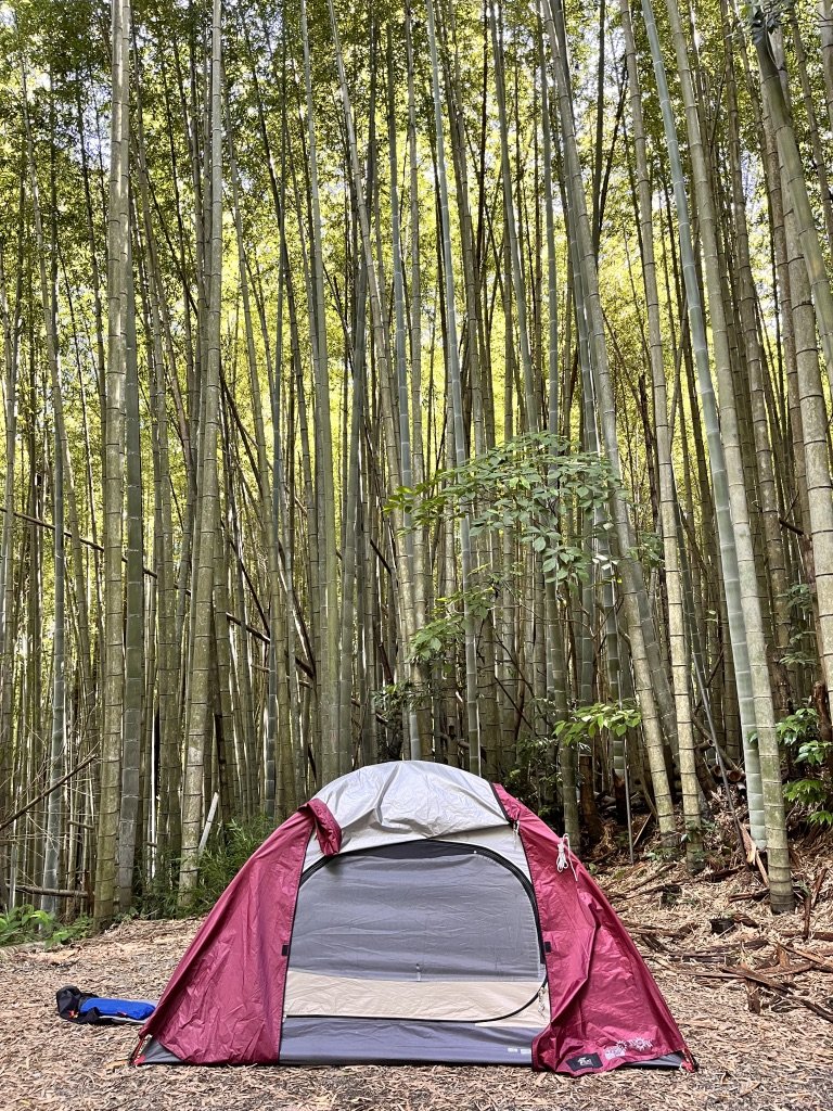 今日は周りは竹藪だからこうやって真正面にテントを据えるのも良いかもしれない。