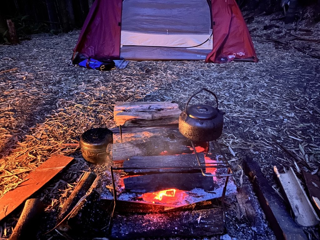 いつもテントを背に焚き火に当たってるもんなw
