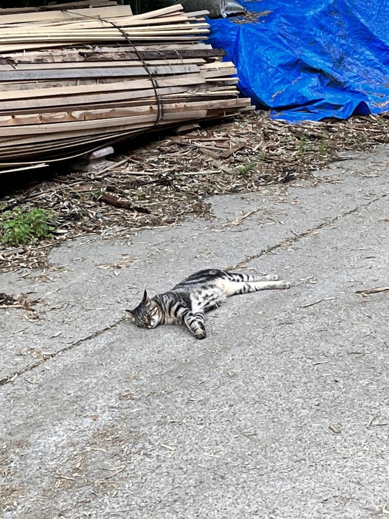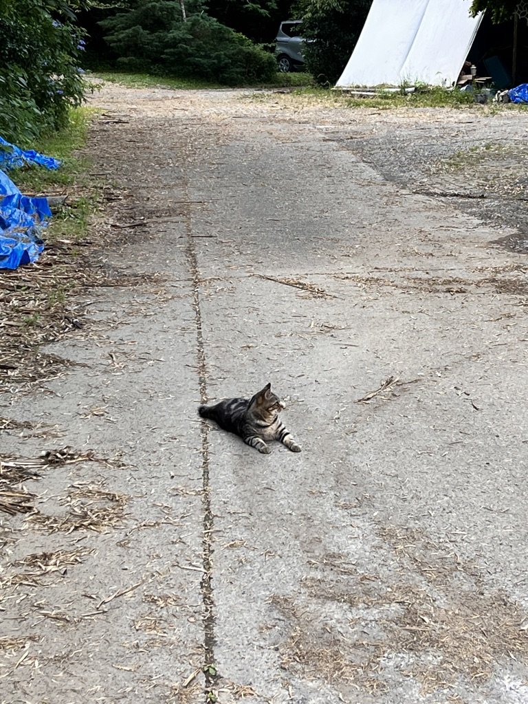お前が寝転がっているな。ここで飼ってるネコなんかな?