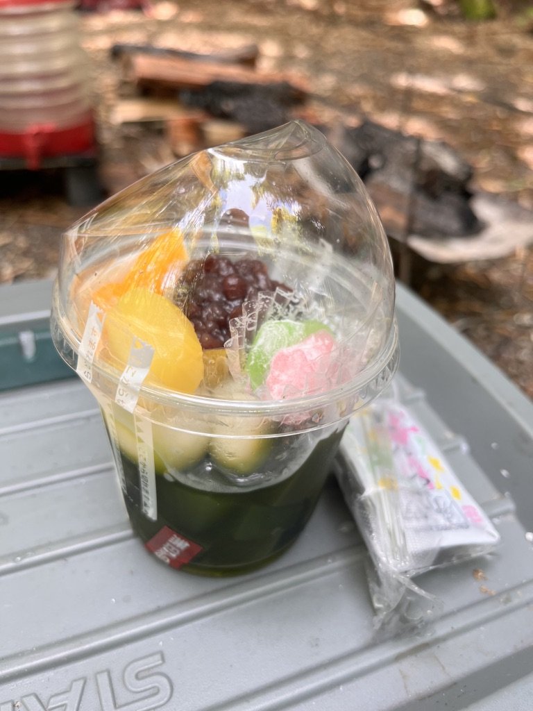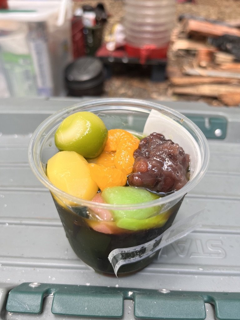 昨日、大山千枚田に行く前に無印で買ってきたあんみつを食うのじゃ!