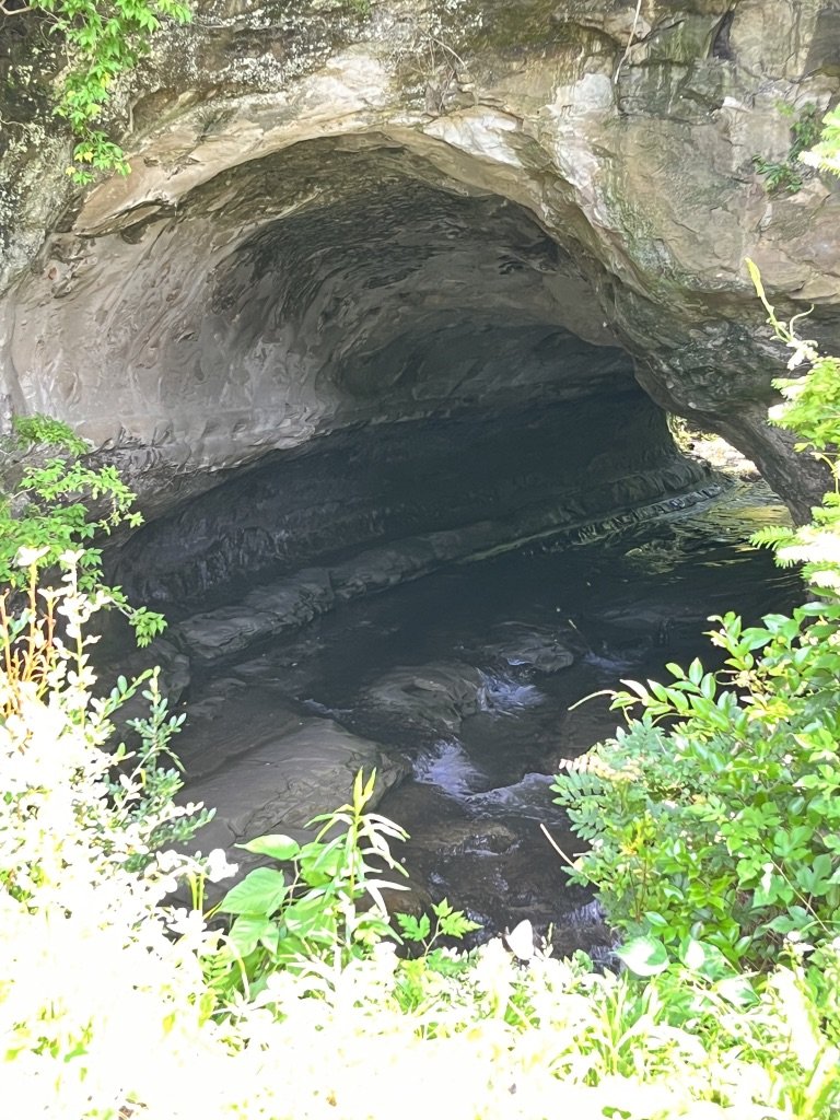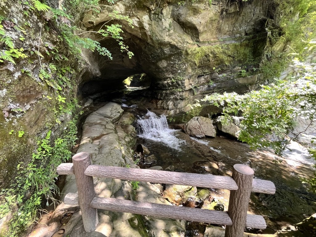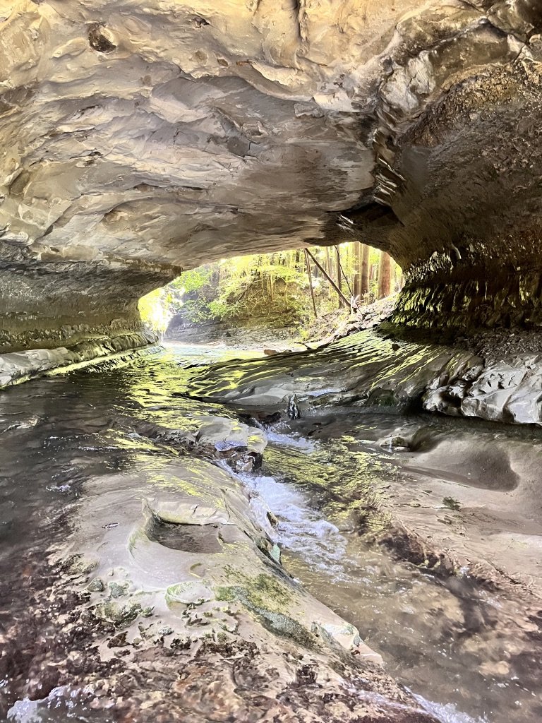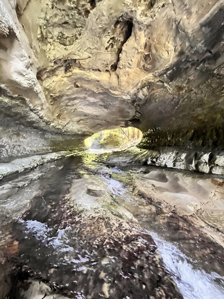 入ってみるとかなり岩肌がえぐれていて、曲がりくねって向こう側に繋がっているのがよくわかる。