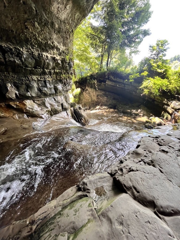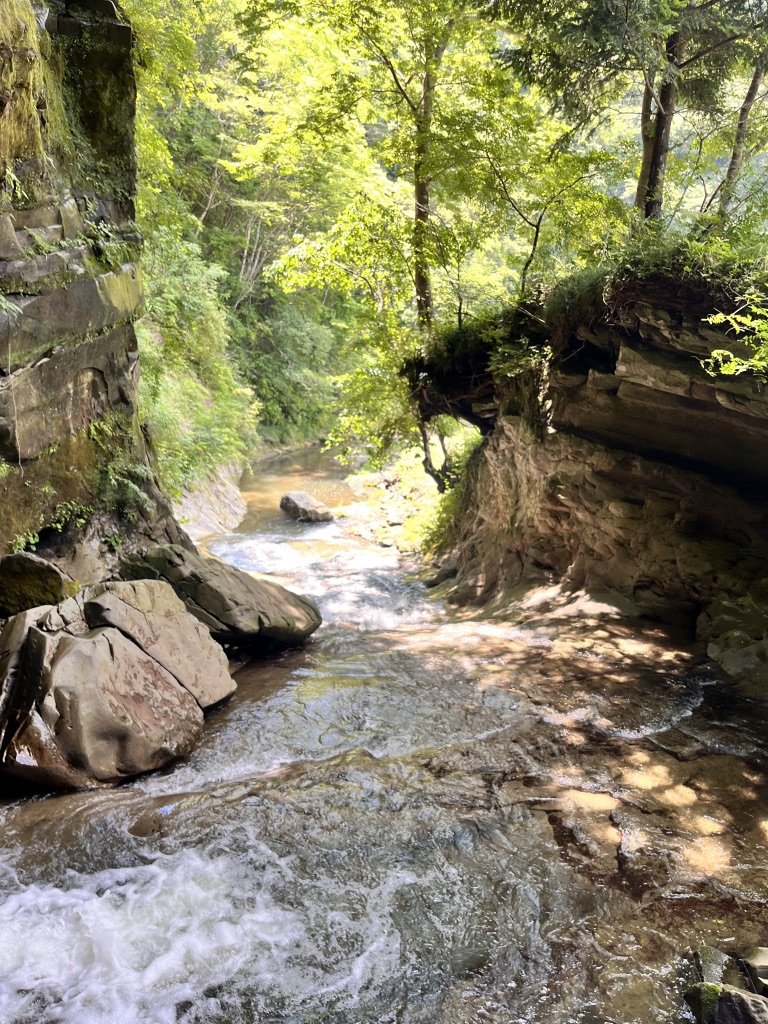 鍾乳洞みたいな岩肌が良い感じにねじれて川になっている。