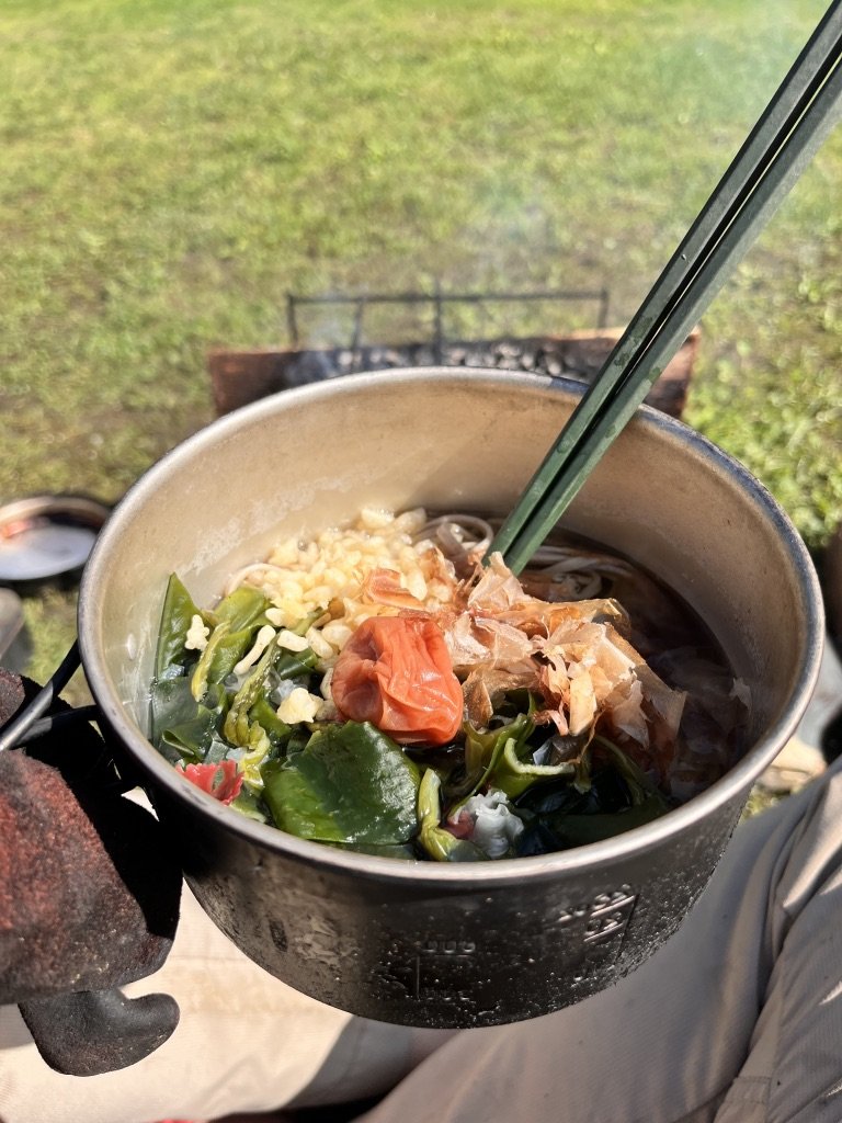 今日の朝ごはんは梅干しそばじゃ!