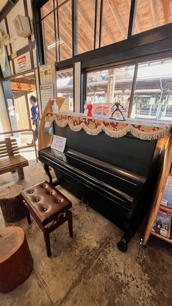 こういったストリートピアノが今は流行っているようだけど、そうした波がこんな二俣駅の構内にも及んでいたとは…!