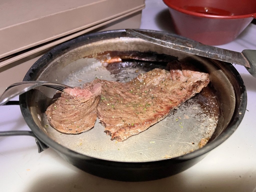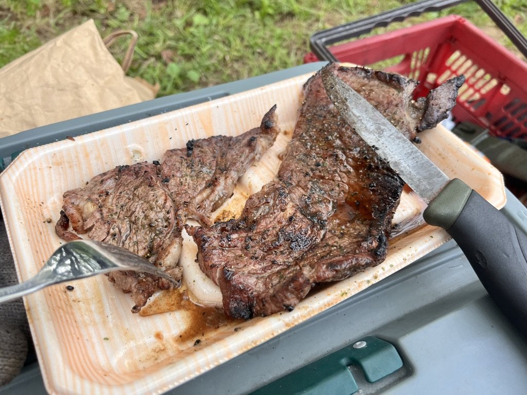 切れ味の良いモーラナイフはステーキなどの肉を切る際も大活躍。