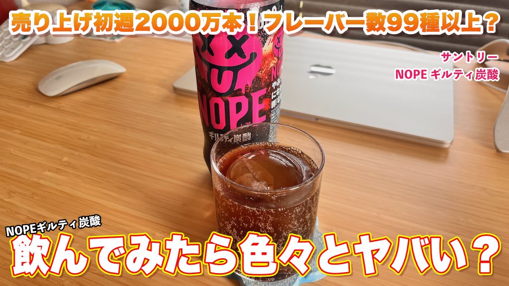 サントリー「ギルティ炭酸 NOPE(ノープ)」は、2026年3月24日の発売からわずか1週間で出荷本数2,000万本を突破した令和史上最速の炭酸飲料なのじゃ!!