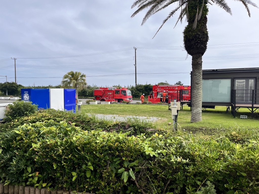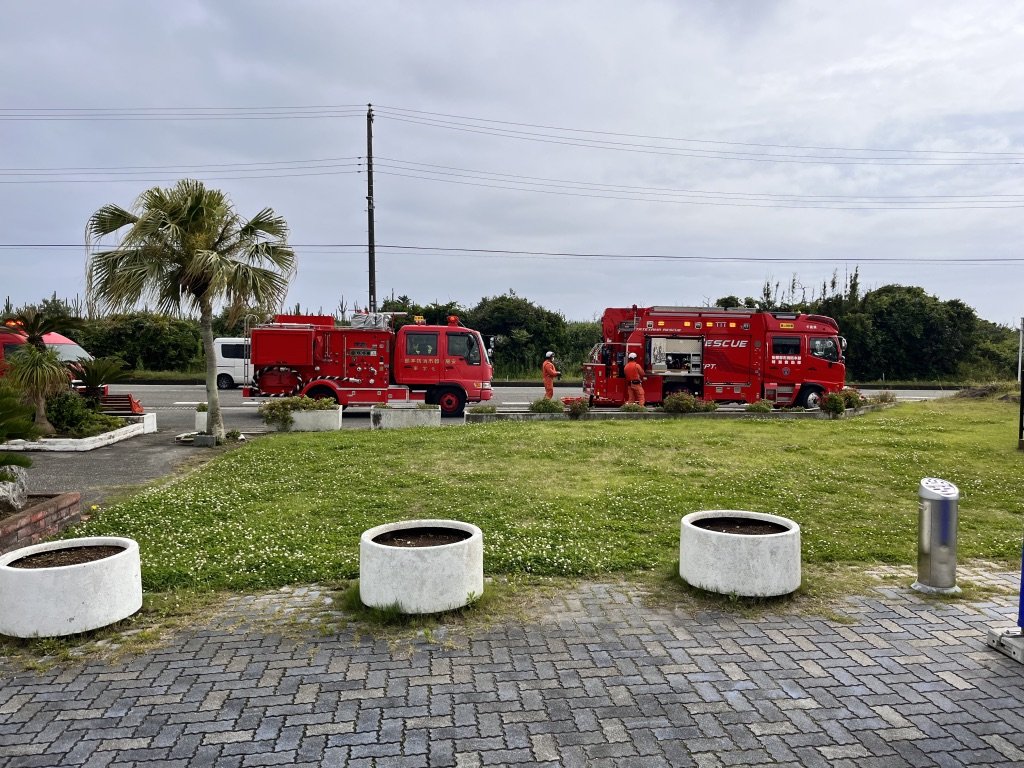 慌ててキャンプ場の方へ引き返すと、なんと駐車場の前に消防車が数台、停まっているではないか!