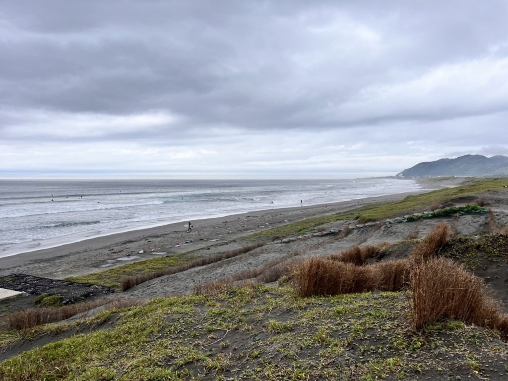 こんな風の強い日だってのに、寒さにもめげずに沖にはサーファーがたくさんいるぞ。