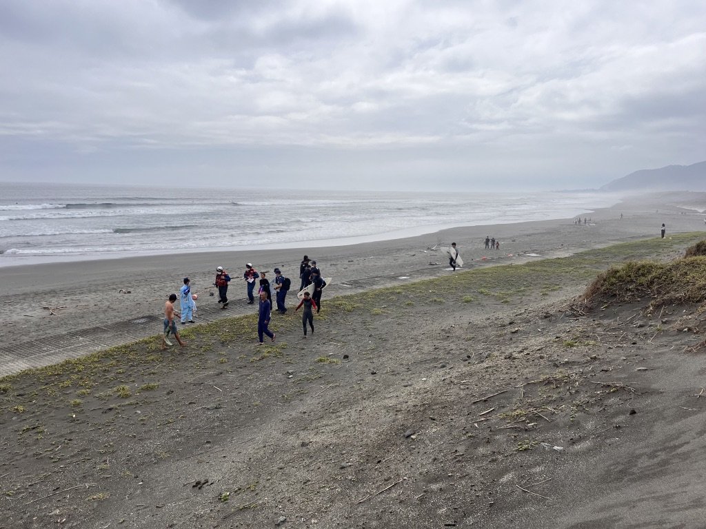 よく見ると遠くの方に救命士が何人か集まり、サーフィンをしていた人たちが一斉に事情を説明している。