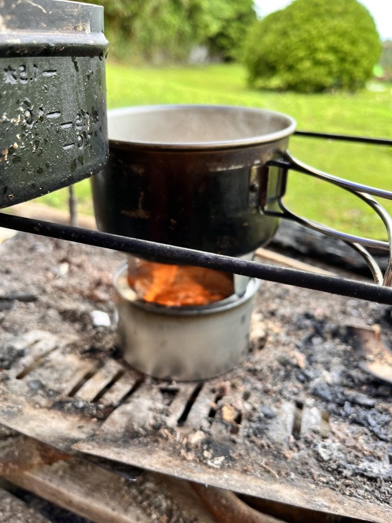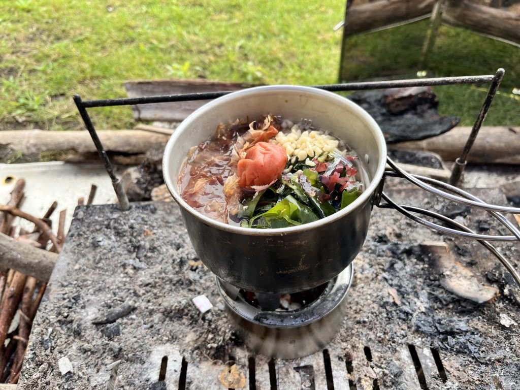朝飯を作る時間になったのだが、今日は面倒なのでもらった固形燃料を使って梅干しそばを作ることにした。